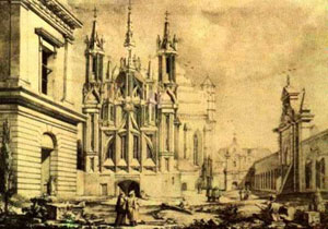 Šv. Onos bažnyčia su fasade išryškėjusia Gedimino stulpų forma